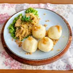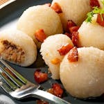 Kluski śląskie lub kopytka podawane z masełkiem lub okrasą